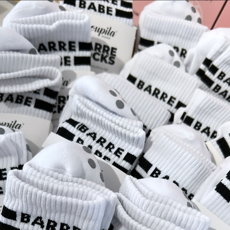 Es ist soweit! Endlich gibt es die coolen Barre Socks mit Grip (rutschfest) von Youpila in allen Studios und bald auch im Online Shop! In verschiedenen Größen vorhanden. Real Barre Queen? Dann schnell zugreifen! Perfekt übrigens auch für den Sommer, da die Socke leicht ist! Kann man in Schuhe tragen.